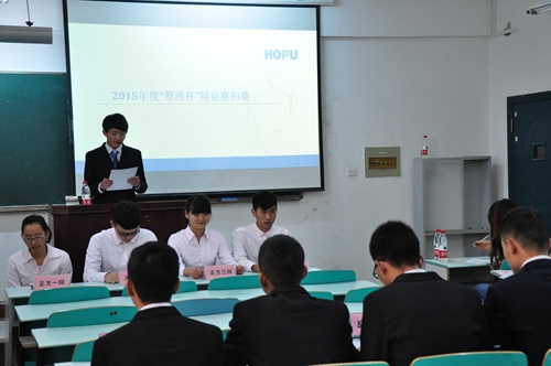 2015年4月9日,由電信石油學院學工辦與校企合作單位武漢厚溥企業聯合舉行的“2015年厚溥杯”辯論賽初賽在5207教室展開。2014級校企合作專業——軟件測試和物聯網應用技術專業各班級均參加了此次比賽,比賽特別邀請了電信石油學院學工辦主任楊主任和相關輔導員干老師、鄢老師擔任此次比賽的評委。